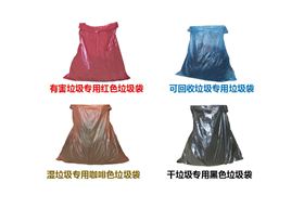 接着就是不同分类的垃圾所专用的垃圾袋颜色分类的问题了,干垃圾专用黑色垃圾袋、湿垃圾专用咖啡色垃圾袋、可回收物垃圾专用蓝色垃圾袋、有害物垃圾专用红色垃圾袋。要记清楚不同颜色的垃圾袋所装放的垃圾哦,有相关的规定如果个人或企业对垃圾进行混合的装运将会进行不同程度的罚款的。